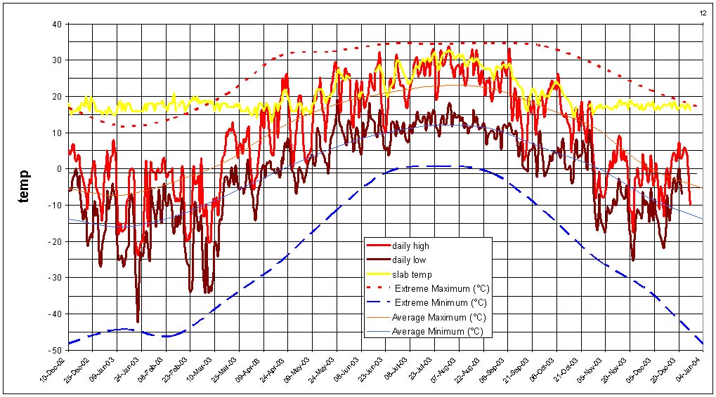 winter. On good days the floor slab is warmed sufficiently during the day